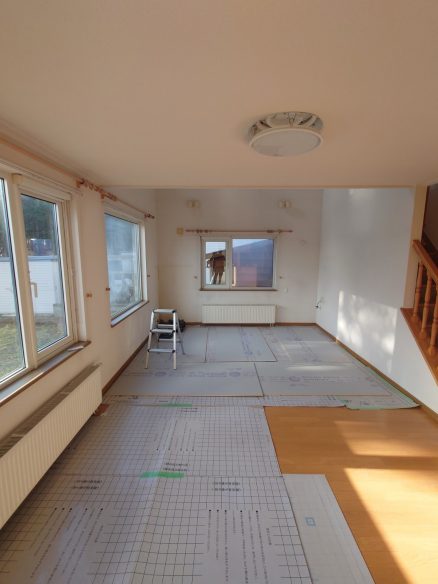 ■まずは丁寧な「養生」から 工事を始めるにあたり、最初に行うのが「養生(ようじょう)」です。お客様の大切なお住まいを傷つけたり汚したりしないよう、搬入経路や工事箇所の周辺をしっかりと保護します。見えなくなる部分ですが、弊社が最も気を使っている工程の一つです。